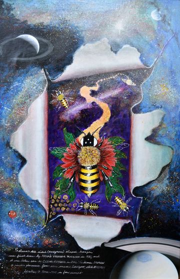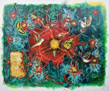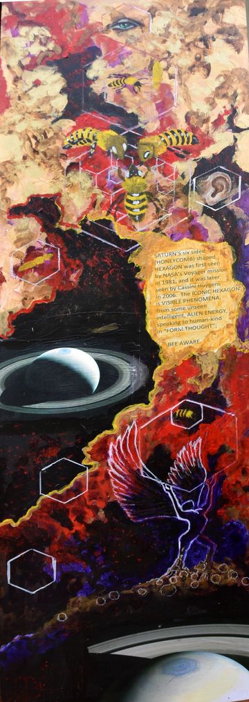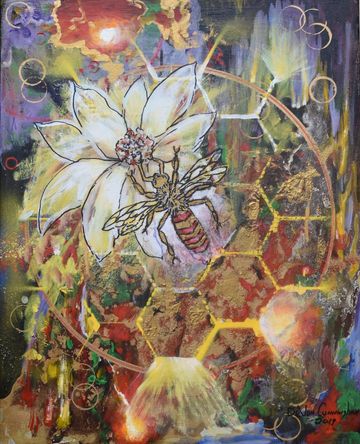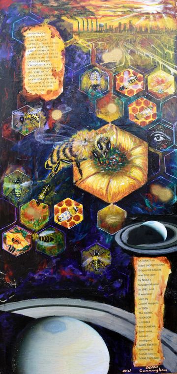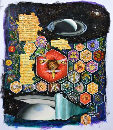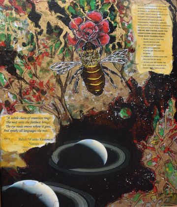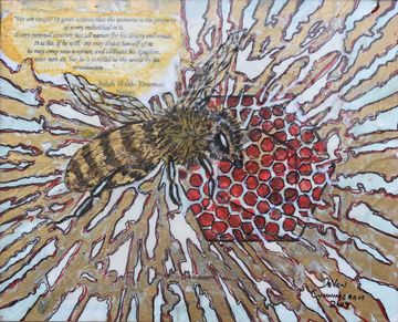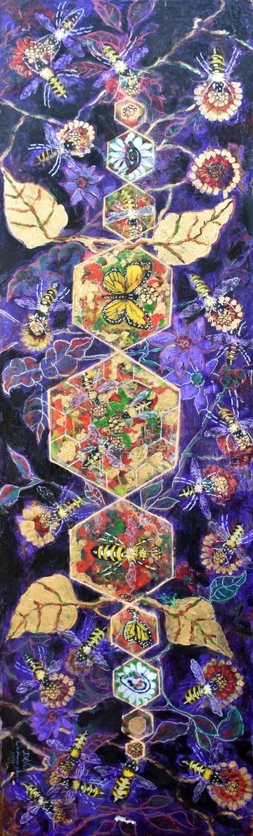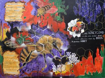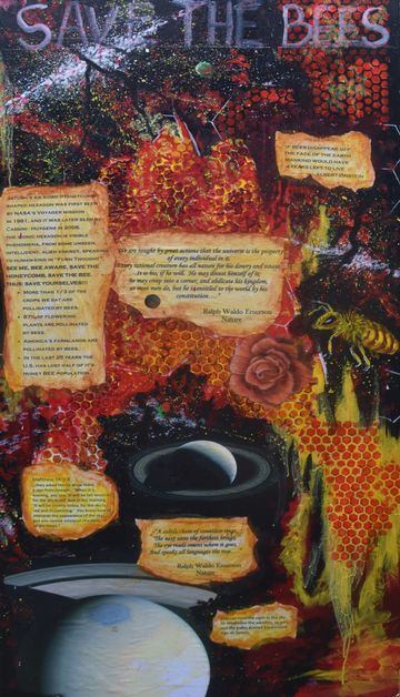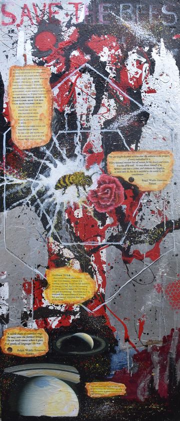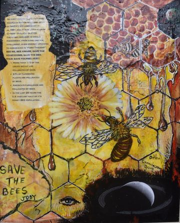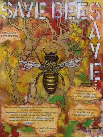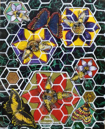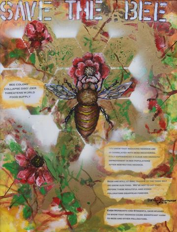 DeVon and Rose became involved with environmental organizations that were alerting the public to the plight of the pollinators across the world. As lovers of nature, they realized the crucial role pollinators played in the world food supply. This cause set Devon on a course to educate people through collaged information while attracting attention by painting pollinators in a visually beautiful way. They then became involved with various organizations to save the bees and decided to help them financially with the sale of these paintings.
